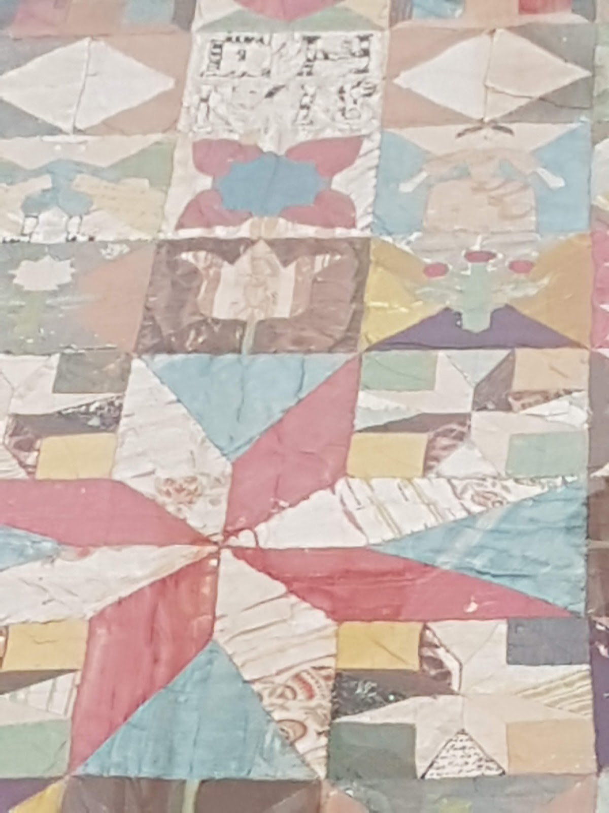 The guild have done conservation and a lot of research into who made it and how. They've even had an attempt at reading the papers which are still in the quilt blocks. There's a piece of original linen on the back so these aren't easily accessible.